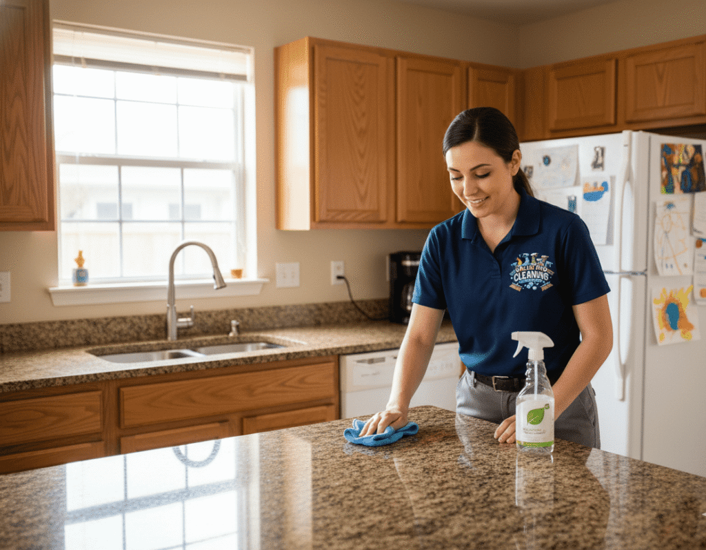 - Kitchen cleaning: countertops, sinks, appliances, stovetop